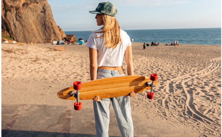 Each deck is 42" long and best serves different styles of riding. The simple, surf style, graphics on the top and bottom of the decks are burned into bamboo layers with a laser. Grip tape is replaced by a sand grit finish which shows off the beautiful bamboo while still providing enough grip for your feet.